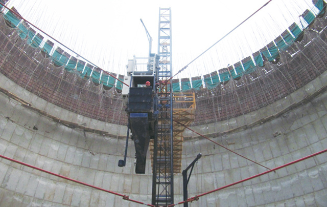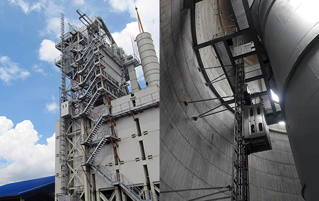 該機可以做到一機多用,是運送鋼筋、混凝土及施工人員的三合一型設備,廣泛應用于電力建設中的煙囪和冷卻塔施工。