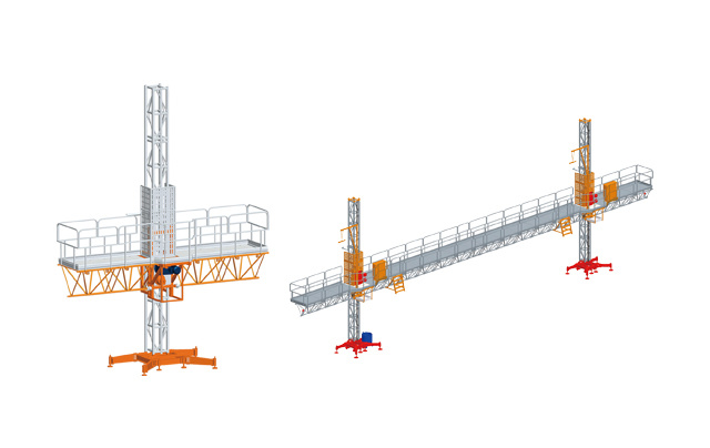 升降平臺用于建筑外墻裝修、玻璃幕墻施工、建筑外表面清潔等作業。采用模塊化設計,可實現單、雙導柱相互轉換,平臺長度可根據現場情況自由組合。