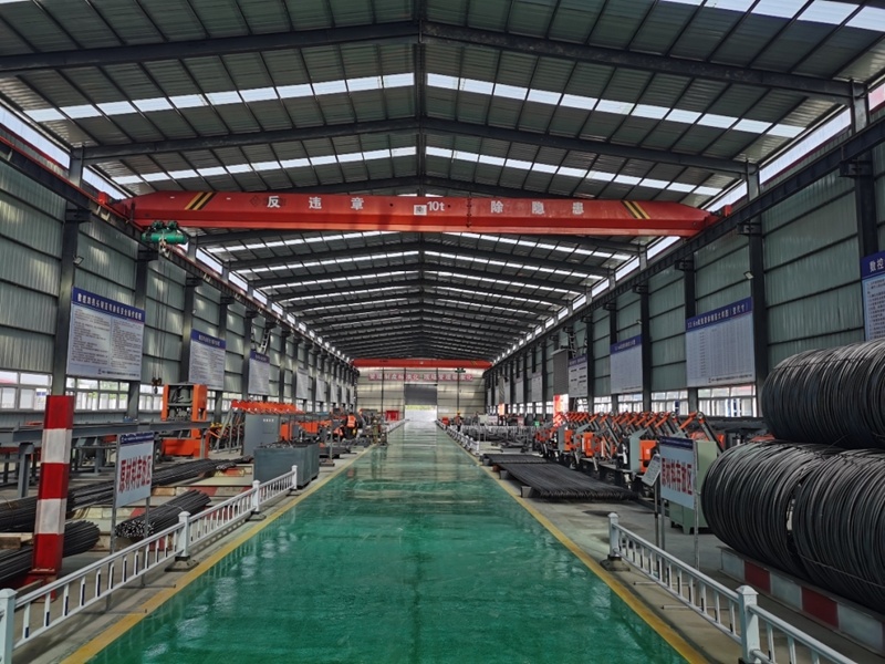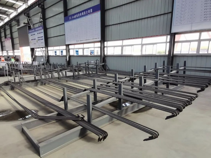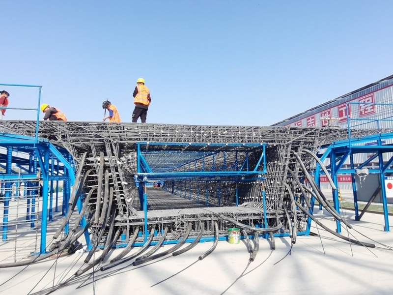 廊坊凱博建設機械科技有限公司(凱博科技)依托北京建筑機械化研究院有限公司在鋼筋加工機械領域多年的技術積累,針對高鐵箱梁預制施工各環節對鋼筋制品的差異化需求,潛心研究、精心攻關,按照中鐵十一局集團橋梁有限公司項目需求,助力新建首個滬渝蓉項目武宜段WYZQ-5標荊門鐘祥制梁場。其中鋼筋加工數字化項目,包含GQX-300數控鋼筋剪切生產線、GWXL2-32D數控彎曲中心、GWXL4-25D數控彎曲中心、GQX-GWX-25數控鋼筋剪切彎曲一體生產線、GGJ12數控鋼筋彎箍機、GT5-12調直機(32米)、GTWQ12調直五機頭、HJDW12焊接定位網等多種設備,可定制化生產高鐵箱梁預制施工各環節多種鋼筋制品。